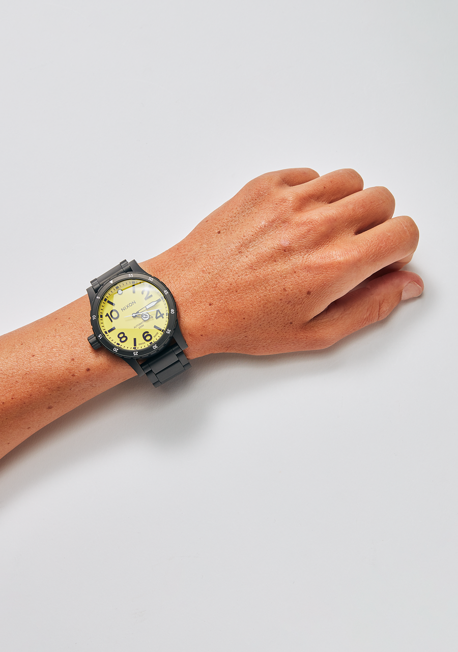 Chiffres appliqués et index sur le cadran et la bague concave. Échelle des secondes imprimée sur la bague concave. Aiguilles moulées sur mesure avec remplissage Superluminova.