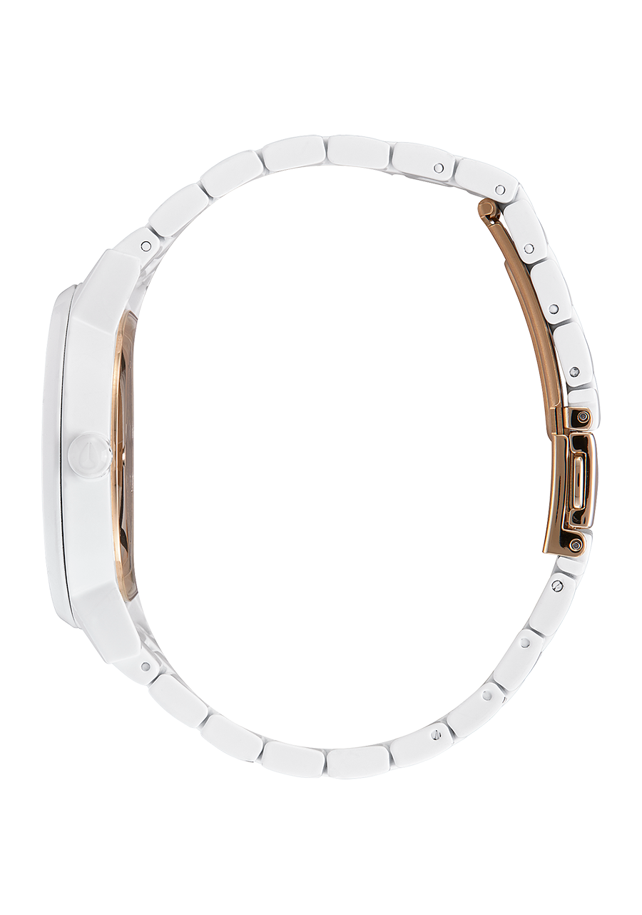 Boîtier en acier inoxydable massif de 37 mm, étanche 50 mètres/5 ATM, verre minéral durci, fond de boîtier clipsé en acier inoxydable et anses à goupille ressort.