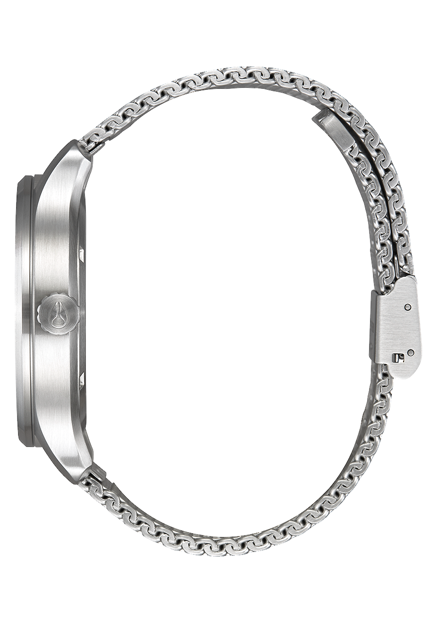 Boîtier personnalisé en acier inoxydable massif de 42 mm avec une étanchéité de 100 mètres / 10 ATM. Équipé d'un verre minéral durci, d'un fond de boîtier vissé en acier inoxydable et de cornes à goupilles ressort.