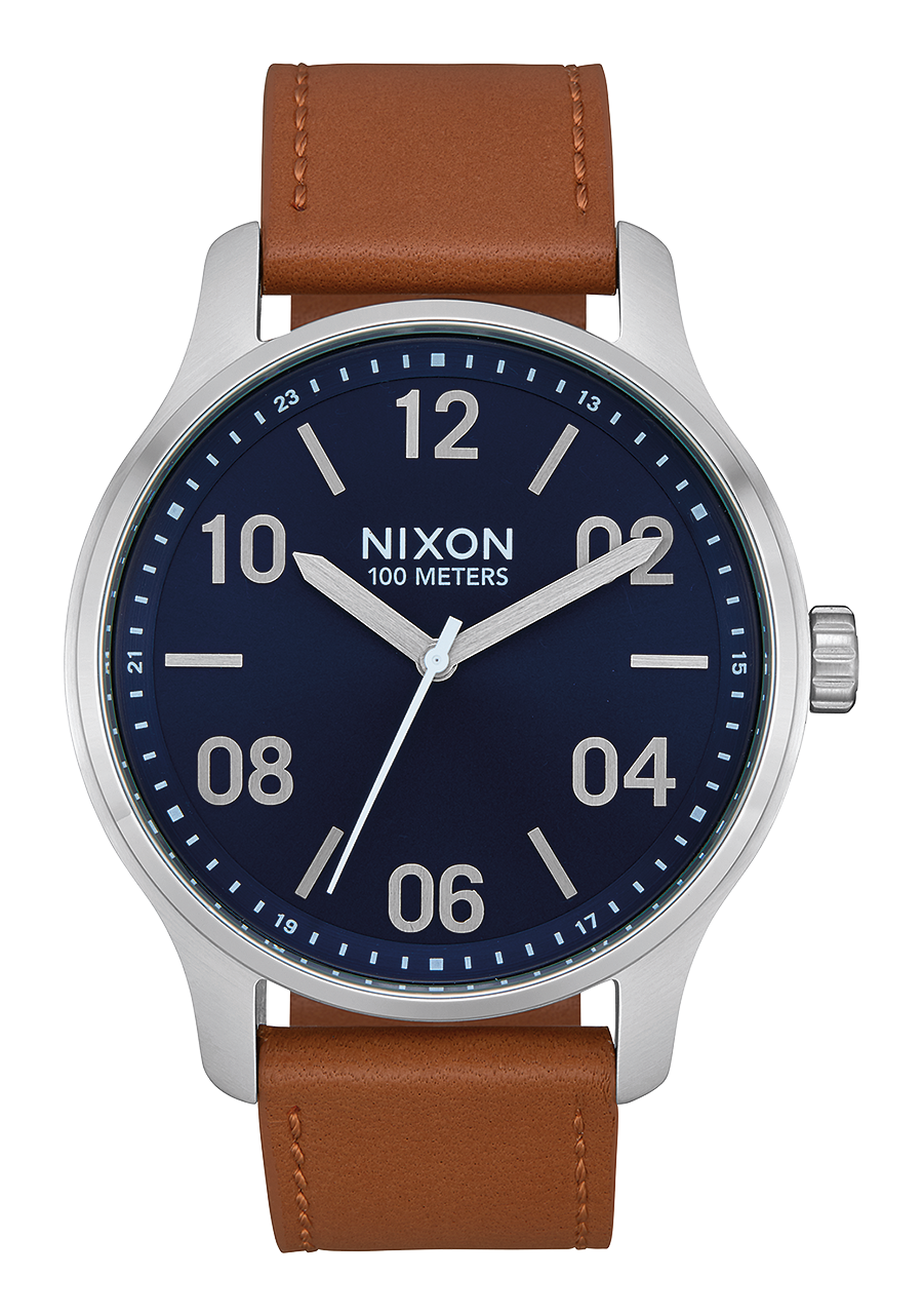 La Patrol est pour ceux qui sont toujours à l'heure. Des index 24 heures sur la lunette intérieure entourent des chiffres prononcés sur le cadran. Elle présente un profil fin associé à un bracelet en cuir véritable, une interprétation moderne d'une montre de terrain classique.