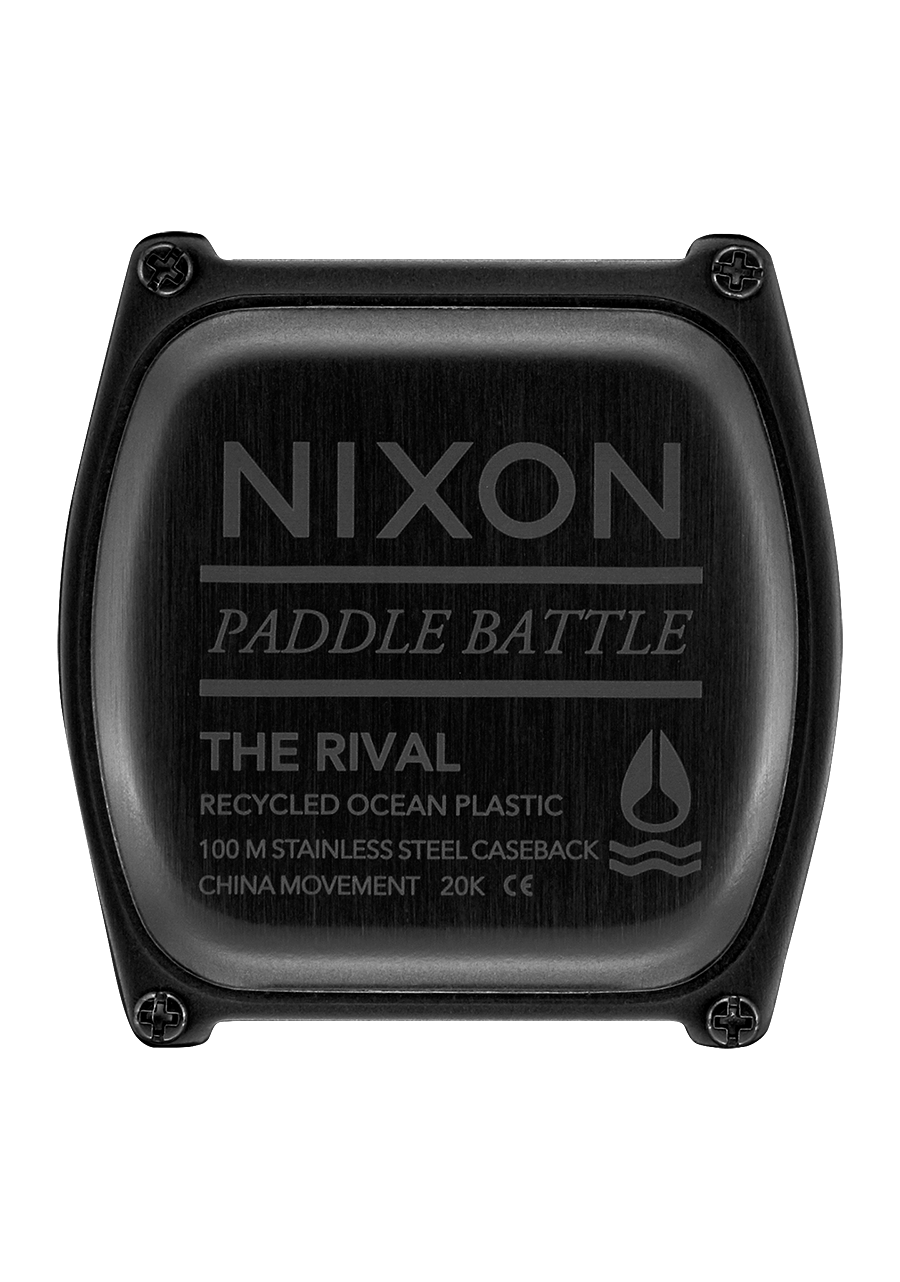 Boîtier de 38 mm en plastiques océaniques recyclés renforcés personnalisés, étanche 100 mètres/10 ATM, verre minéral durci, poussoirs étanches personnalisés, fond de boîtier vissé en acier inoxydable.