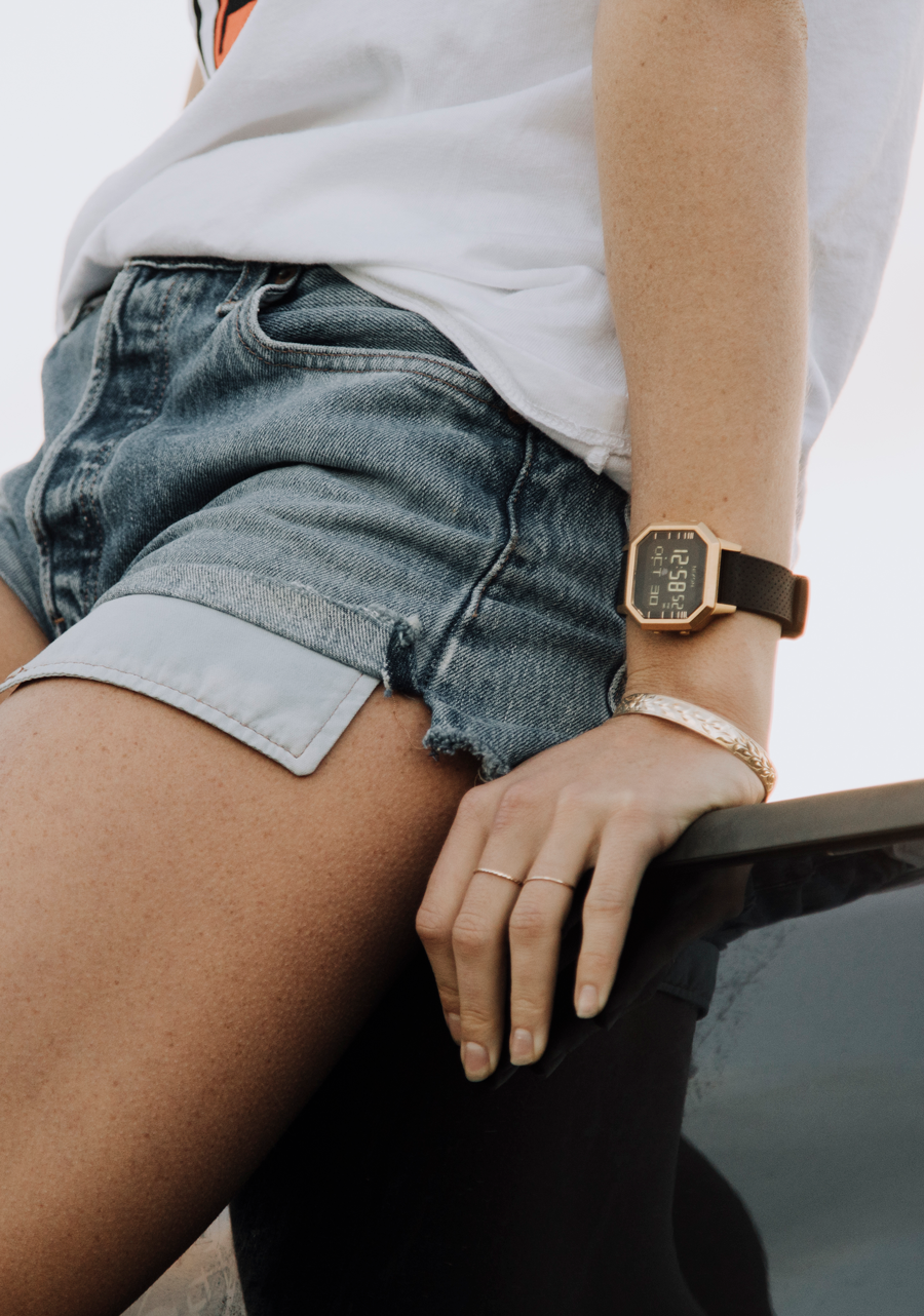 Module numérique personnalisé avec marée basique. Fonctions incluant l'heure (12 ou 24 heures), calendrier jusqu'en 2099, marée basique, marée future, rétroéclairage EL, chronographe et minuterie personnalisable. L'écran d'accueil peut afficher l'heure et la date ou l'heure et la marée.