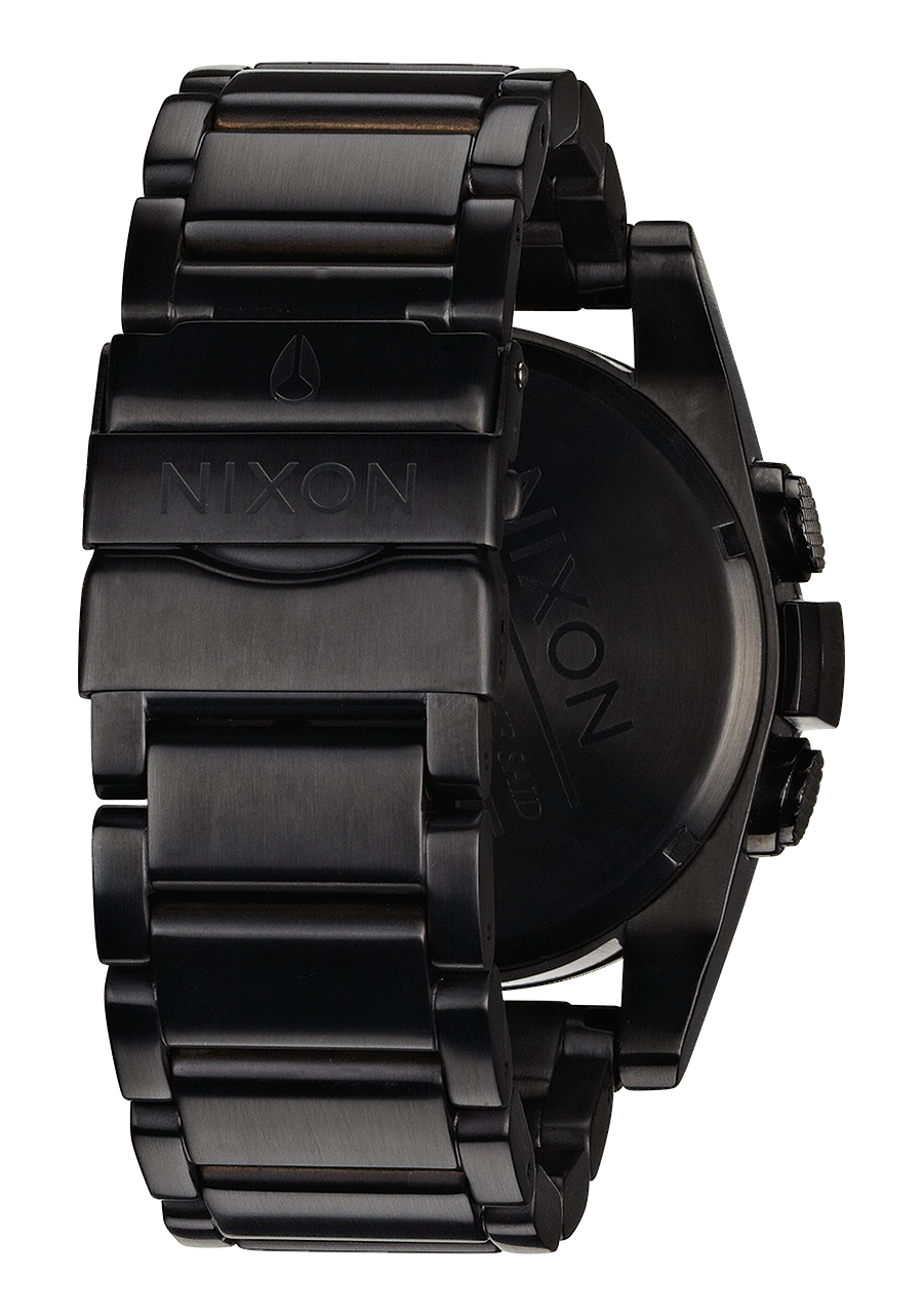 44,5 mm, boîtier personnalisé en acier inoxydable massif, étanche 100 mètres/10 ATM, lunette fixe en acier inoxydable massif, verre minéral durci, poussoirs en acier inoxydable avec double joint, fond de boîtier vissé en acier inoxydable et anses à goupilles vissées.